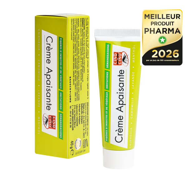 La crème apaisante Cinq sur Cinq® a été élue Meilleur Produit Pharma 2026 par un jury de 100 consommateurs, en conditions réelles, avec une note supérieure à 18/20. Label Biotopia.